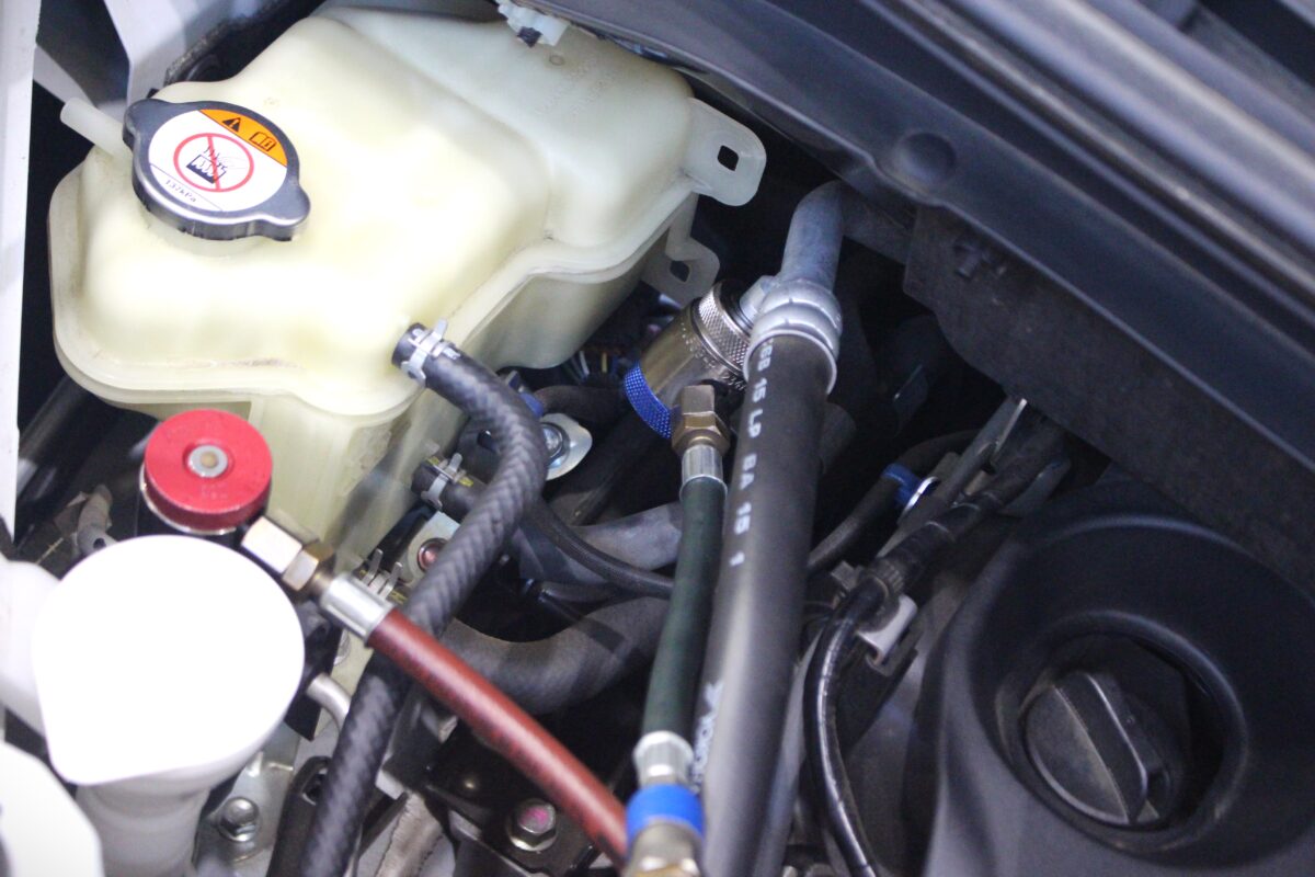 高圧・低圧ガスそれぞれの回路にエアコンガスメンテナンスマシン”TEXA-テクサ-”を接続