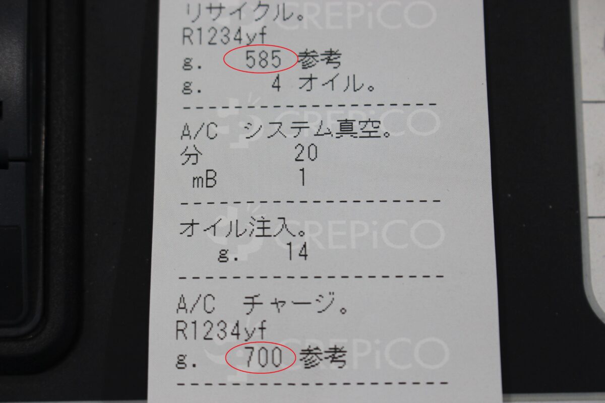 ガス:1234yf(700±20グラム) 、オイル:PAG 作業開始です!