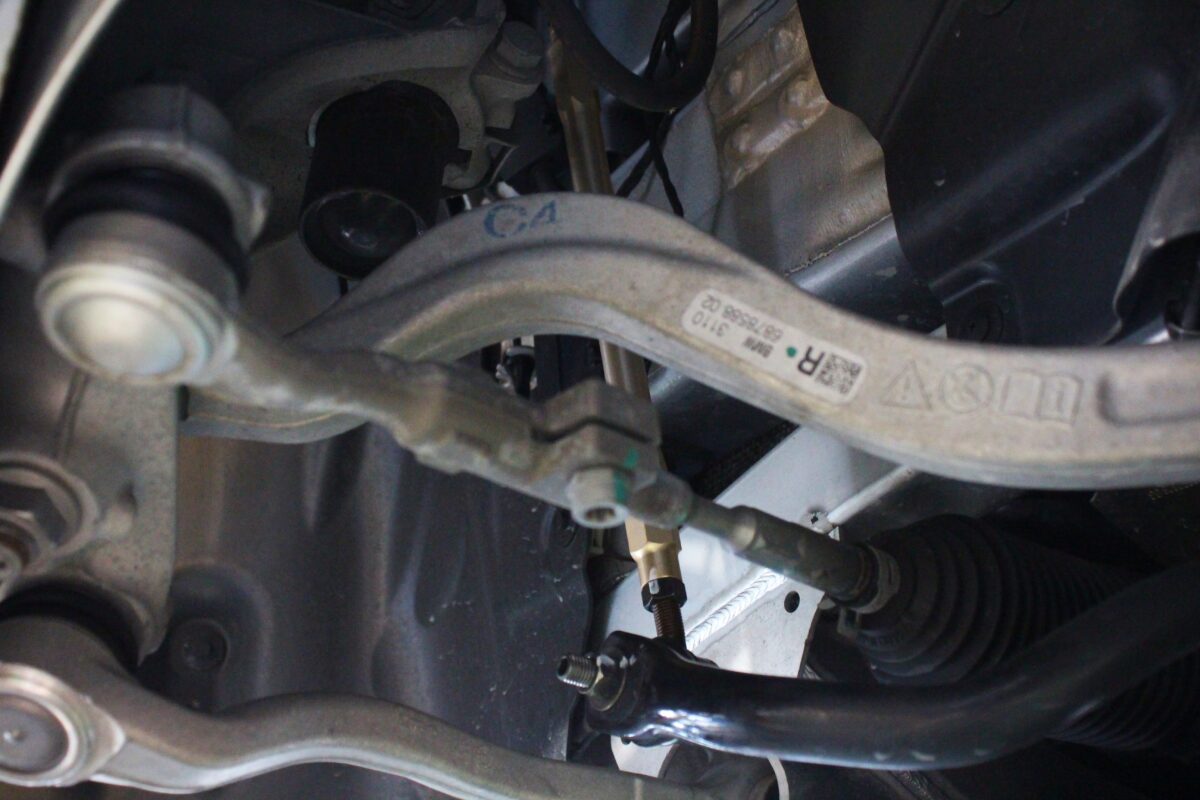 車体ロールを抑えるために装着されているスタビライザー。