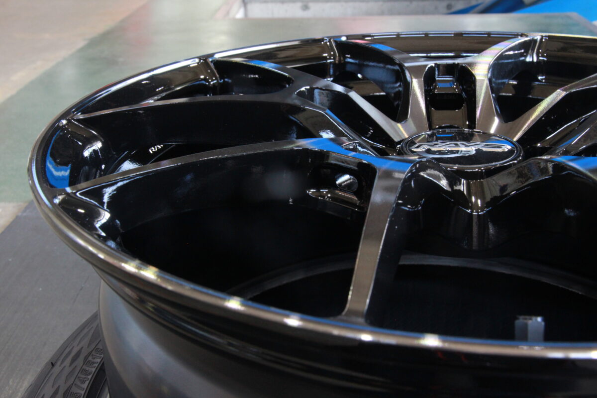 スポーク天面部にブラッククリア塗装を施され