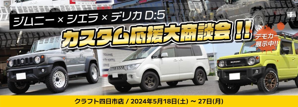 本日5/18(土)~27日(月)までクラフト四日市店で【ジムニー×シエラ×デリカD:5カスタム応援大商談会】を開催!!