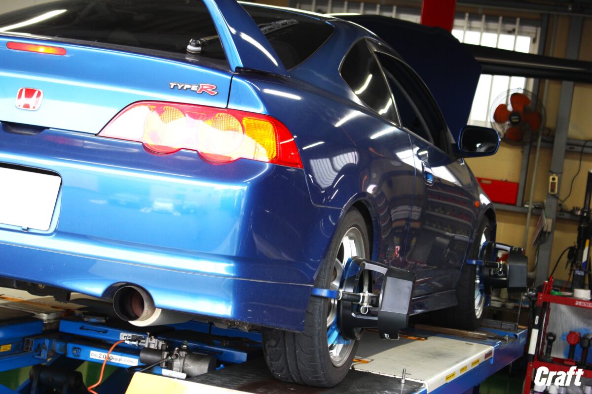 本日はアライメント調整作業で インテグラ タイプR DC5 がご入庫中。