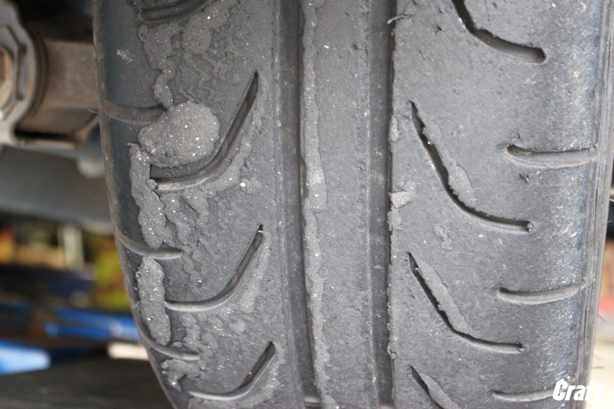グリップ力の高いタイヤはゴム(タイヤ)を溶かすようにグリップするのでこの様なベトベトしたタイヤかすが発生するのです。