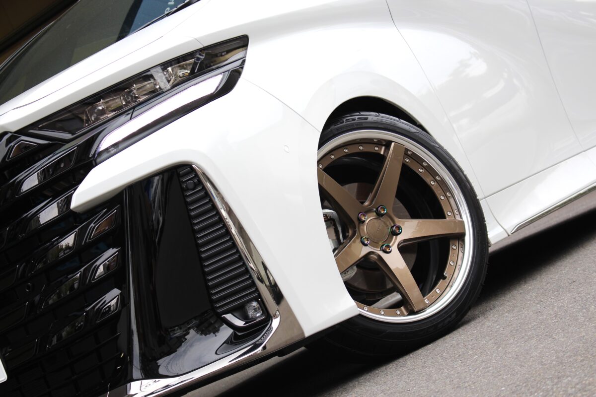 CVFの太めなスポークで力強い印象となるので、ヴェルファイアのボディサイズにも