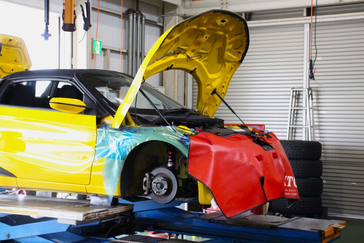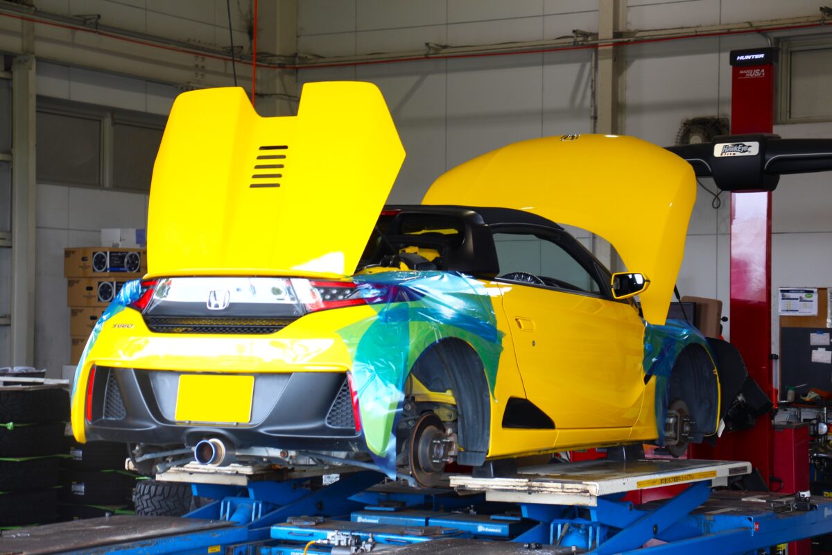 ピットイン中の鈴鹿名物?なS660は、車高調を用いてのローダウン作業が進められています。