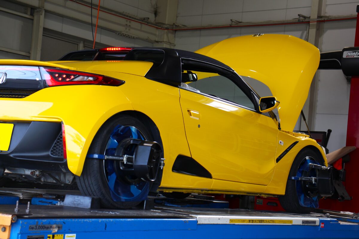 走行性能とホイールのツラ感を求める上でアライメント作業は必須。