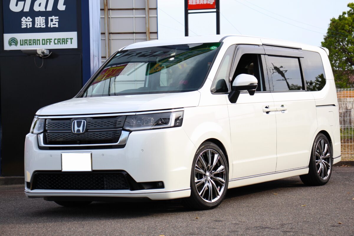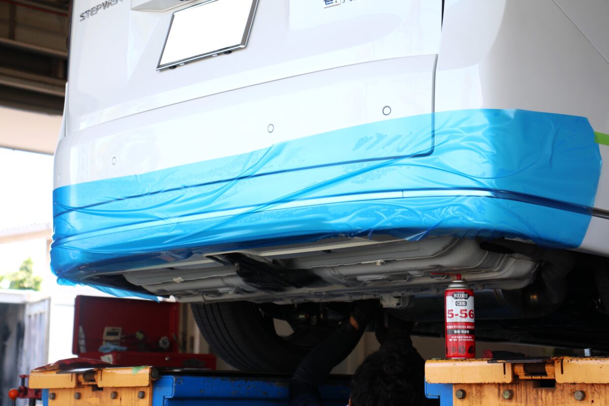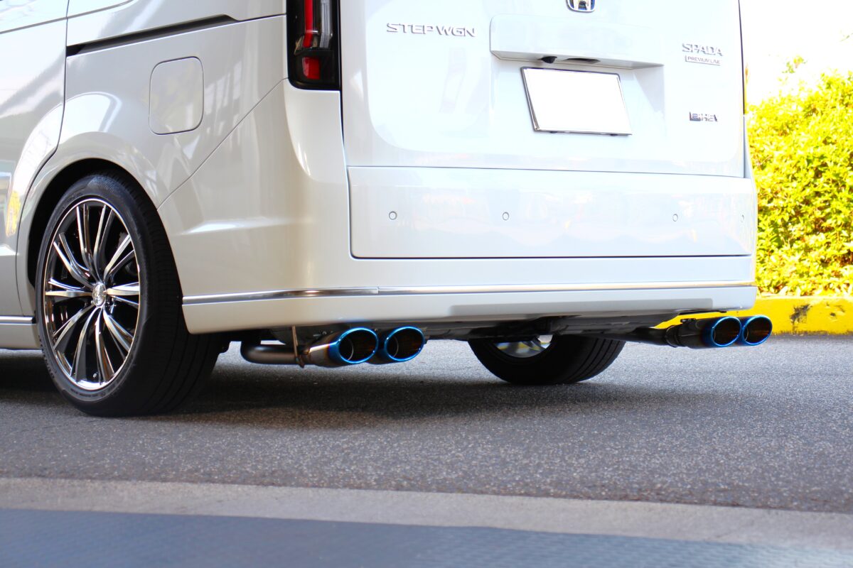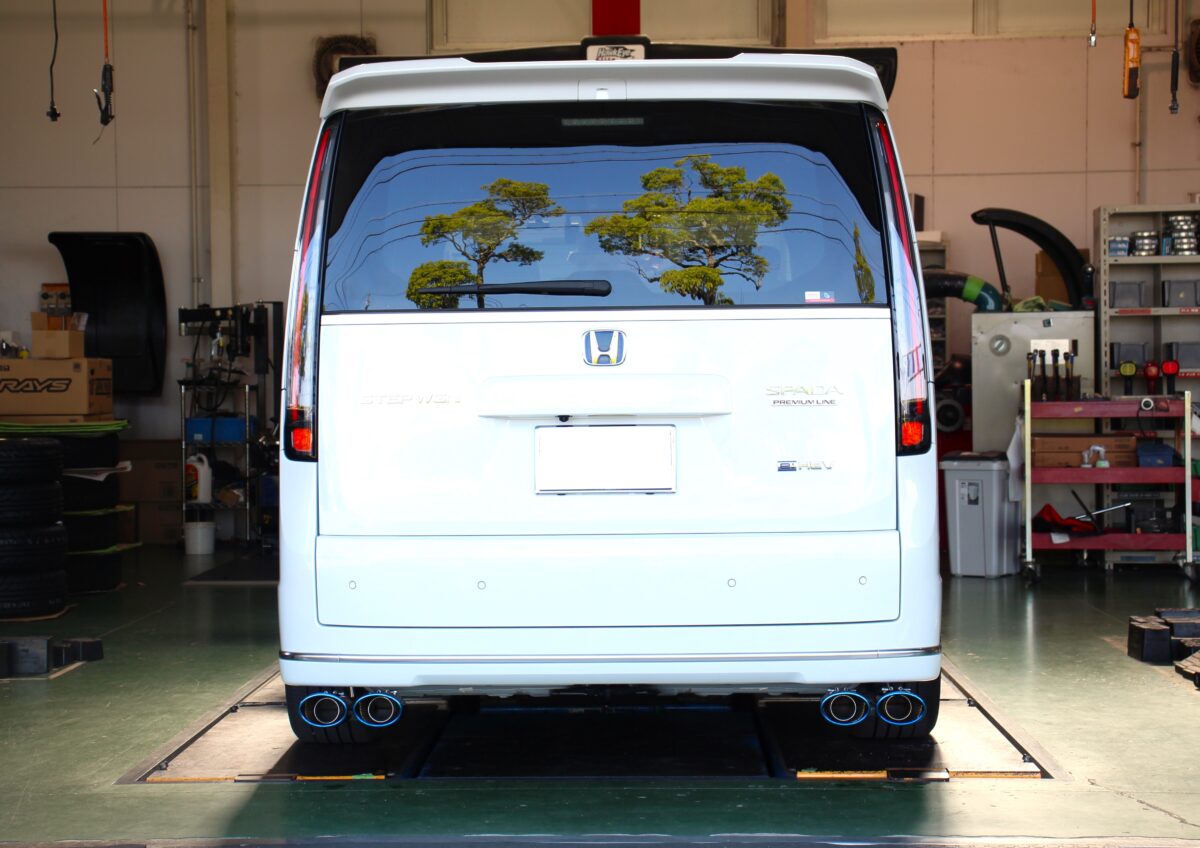 マフラー交換に取りかかるのは"ホンダ ステップワゴン e:HEV(RP8)"。