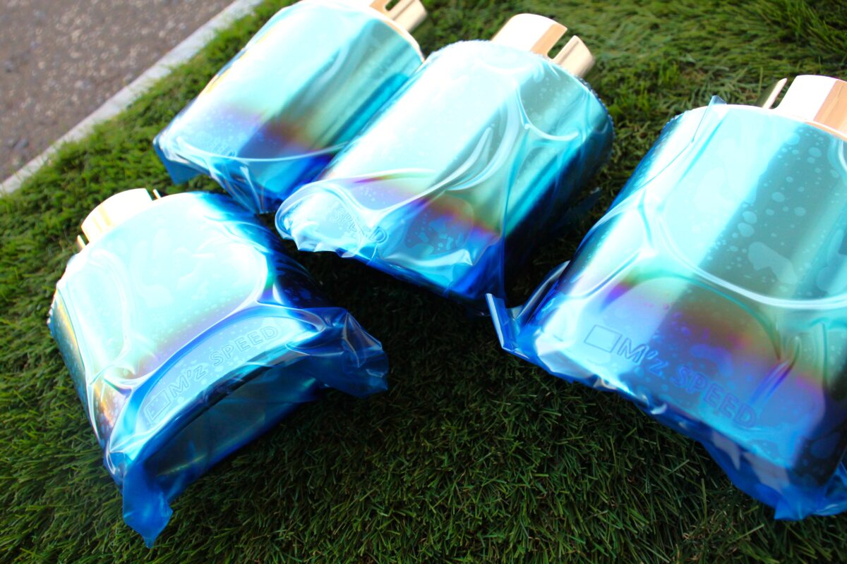 控えめな純正マフラーから一転、迫力の左右4本出しスタイルへ。