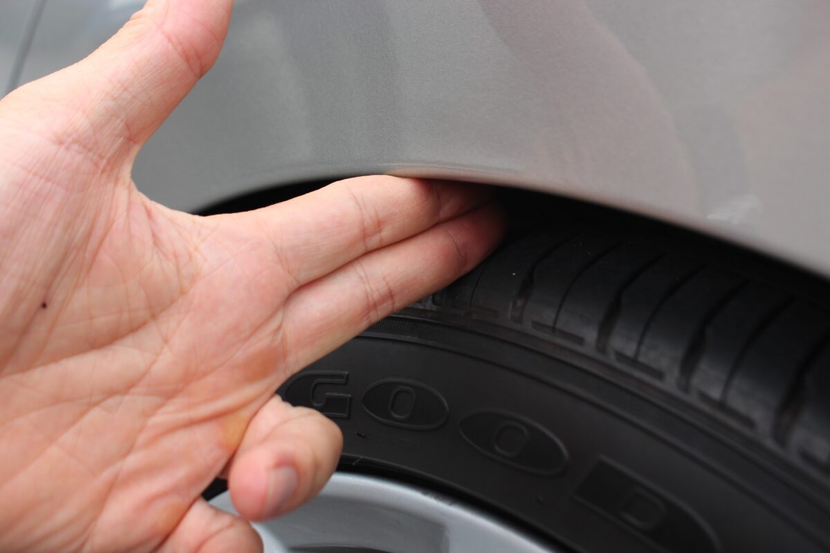 入庫時の車高は指1本がギリギリ入るくらい…ちょっと下がりすぎた車高をもう少し上げていきます