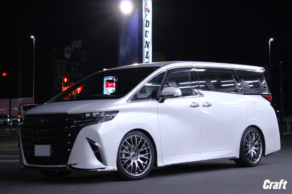 発売以来、カスタムのご相談が絶えません!! 40系アルファードのタイヤ・ホイール・ダウンサス交換 しっかりダウンに20インチセットを装着しました☆☆ 新たにPHEVが発表され、さらに盛りあがる予感?! 40アルファード(AGH40W)のトータルカスタマイズをご紹介します☆☆   ■TANABE SUSTEC DF210 ダウン量に特化したローダウンスプリングのTANABE DF210 ヘタらない(へたり永久保証付)から限界の下げ幅が狙えます バネレートは純正比10%~15%アップ、ローダウン特有のゴツゴツ感、不快感を抑えています   ■TANABE BUMP STOPPER TANABE製のショートバンプラバー ローダウンでの底付による不快感をショート化することで軽減 ダウンサスと同メーカーによる製品化で相性は問題なし   ■RAYS VERSUS VOUGE RAYSのロングセラーモデルの1つであるVOUGE 平面と曲面の組み合わせが立体感を生み出す、元祖立体造形美ホイール クローム特有の陰影の出る奥深さが上品なスタイルを生み出します   デザインによる立体感に加えてセンターへスポークを落としこむ テーパーの効いたシルエットがさらなる立体感を獲得   ■TOYO PROXES Comfort Ⅱs 上質なクルージングを実現するプレミアムコンフォートタイヤ T-MODEによる快適な乗り心地と操縦安定性の両立を実現 ラテラルサイプによる静粛性の高さも売りの一つ   ■アライメント測定・調整 クラフト全店で“3Dアライメントテスター”を完備 ローダウン時には必須のアライメントを迅速に測定し数値化 熟練のスタッフがお車にあった最適なセッティングをいたします   【ビフォー】 【アフター】 タイヤ・ホイール交換に加えてダウンサスによるローダウンを実施 その違いは一目瞭然、理想のローフォルムを獲得しました   WHEEL:RAYS VERSUS VOUGE SIZE:20inch COLOR:DR/クロモイブリード TIRE:TOYO PROXES Comfort Ⅱs   ローダウンを前提に定番オフセットより攻めたサイズで装着 フェンダーいっぱいまで出面をこだわり、ツライチセッティング フルスパッタのDRカラーがボディ色と相性抜群◎   ややナットホールが狭いレイズホイールですので レイズ製の19HEXのナットロックセットをご用意しました 天面にレイズロゴが入ってコダワリがうかがえます♪   この度はクラフト知立店をご利用いただきありがとうございました   レイズ公認のレイズNo.1ショップにクラフト知立店 40アルファード/ヴェルファイアのカスタマイズは デモカー在籍のクラフト知立店まで!!