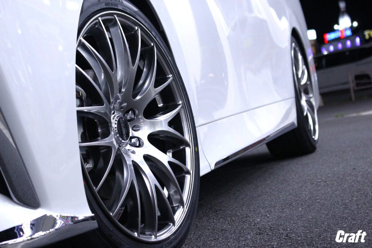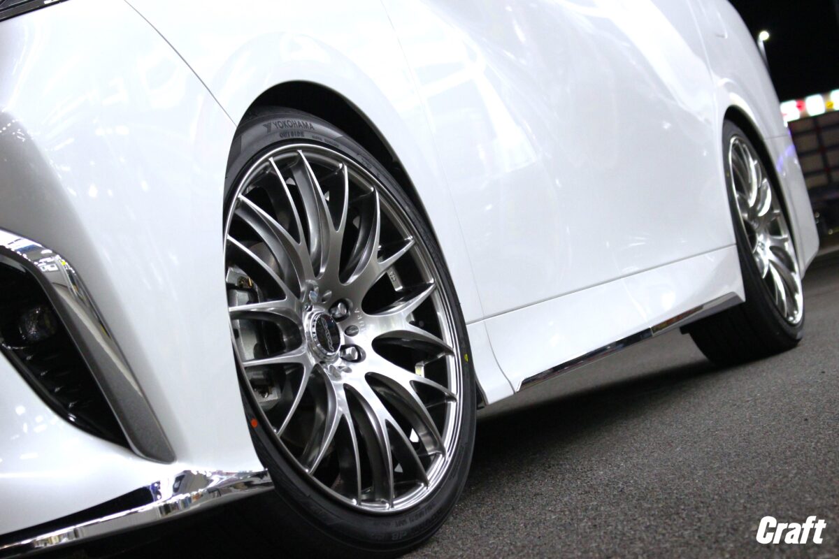 20インチから21インチへインチアップ!! HOMURAの人気モデル“2×9+”を40系ヴェルファイアへ装着しました☆☆   クラフト知立店 白井です 本日は40系ヴェルファイアの仕様変更をご用命いただきました 既に“RAYS HOMURA 2×7FT”の20インチを装着していましたが 40扁平の肉薄さを獲得すべく“21インチ”のセットを装着します   ■RAYS HOMURA 2×9+ HOMURAシリーズ屈指の人気モデル“2×9+” 21インチの展開はやや少なめのHOMURAですが 2×9+は21インチ設定がございました 2×9のメッシュデザインが21インチの迫力に拍車をかけます   M/Cが行われブランドマシニング&C/Cの意匠変えが行われています HOMURAのマシニングはプレミアムな装いに仕上がります カラーのグレイスシルバーはハイパー系で深みがあります   ■YOKOAHAMA ADVAN  dB V552 20インチでもお使いだった“ADVAN dB”を21インチでもリピート 乗り心地・静粛性に優れたフラッグシップモデル 肉薄さ感じる“40扁平”サイズで理想を形にしていきます   WHEEL:RAYS HOMURA 2×9+ SIZE:21インチ 9.0J COLOR:グレイスシルバー TIRE:YOKOHAMA ADVAN dB V552   21インチ1ピースモデルではチューナーサイズの展開になることもしばしば 今回は車高調にてローダウン済みでしたのでツライチサイズにて仕上げています インナークリアランスにも不安がある車両ですが実車測定にて確認済み   ツライチで仕上げることでテーパーシルエットに拍車がかかります ハイパーカラーリングは陰影がはっきりしシルエットを際立たせる効果あり 2×9+のシルエットに惚れ込む理由がうなずけますね   引き続きクラフト知立店をご利用いただきありがとうございました またのご用命もお気軽にお申し付けください   40アルファード・ヴェルファイアのカスタム実績多数 ご相談はお気軽に♪