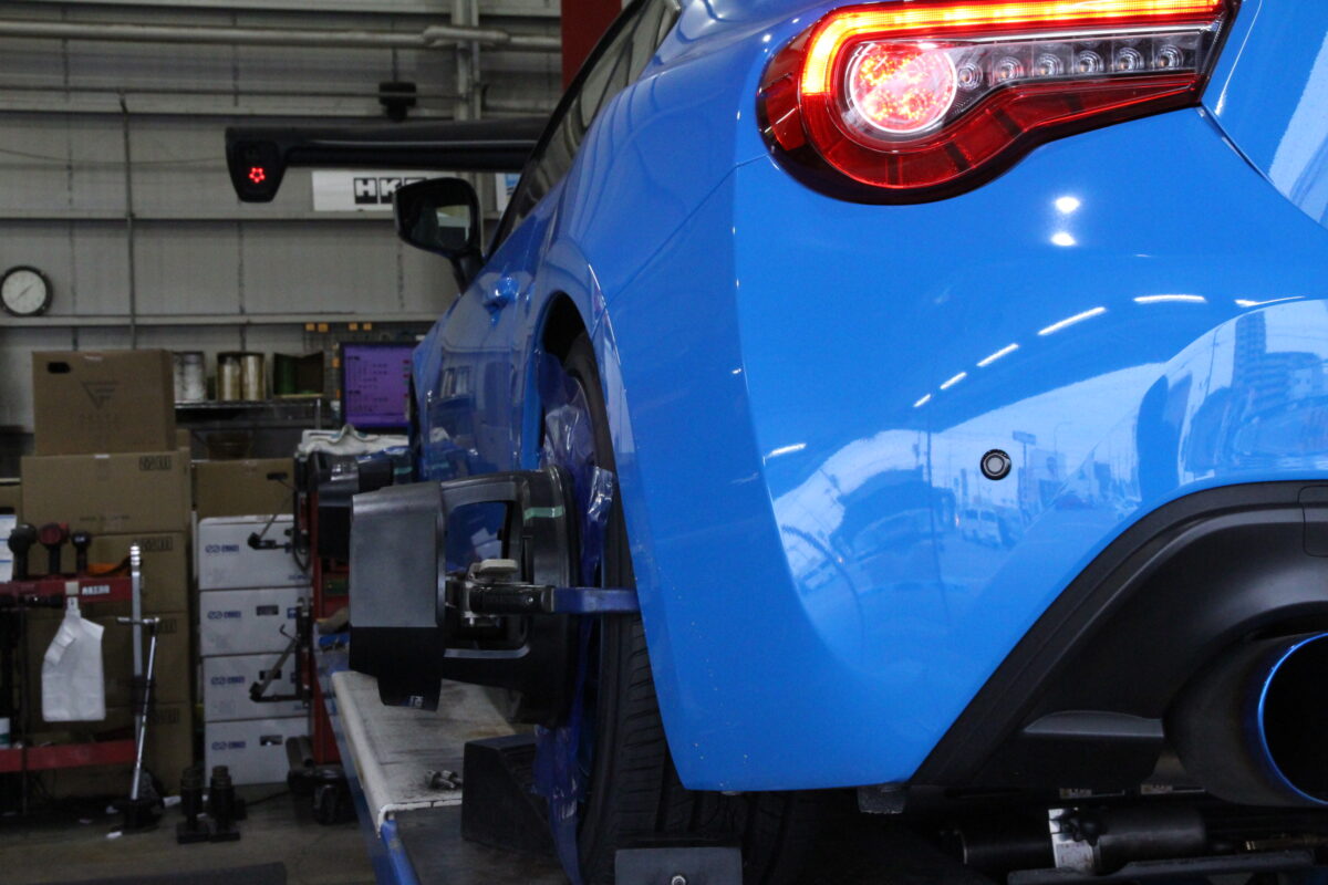 ホイールを取り付け、車高の高さが決まったら仕上げのアライメント