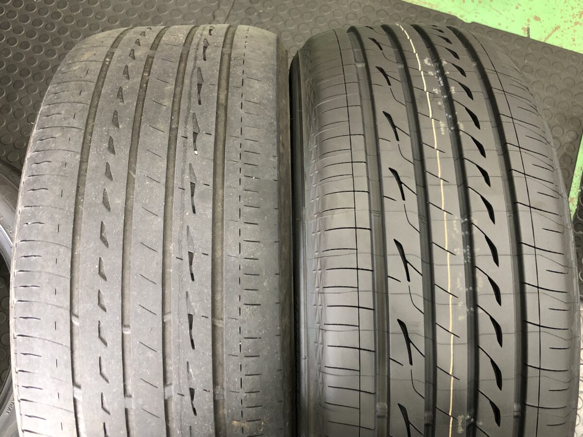 新品と比較してもタイヤ溝の少なさは歴然。