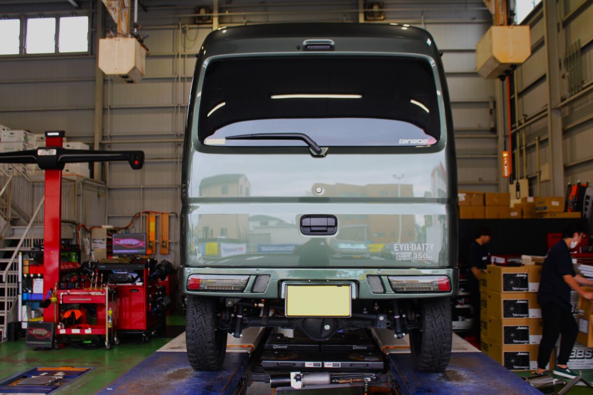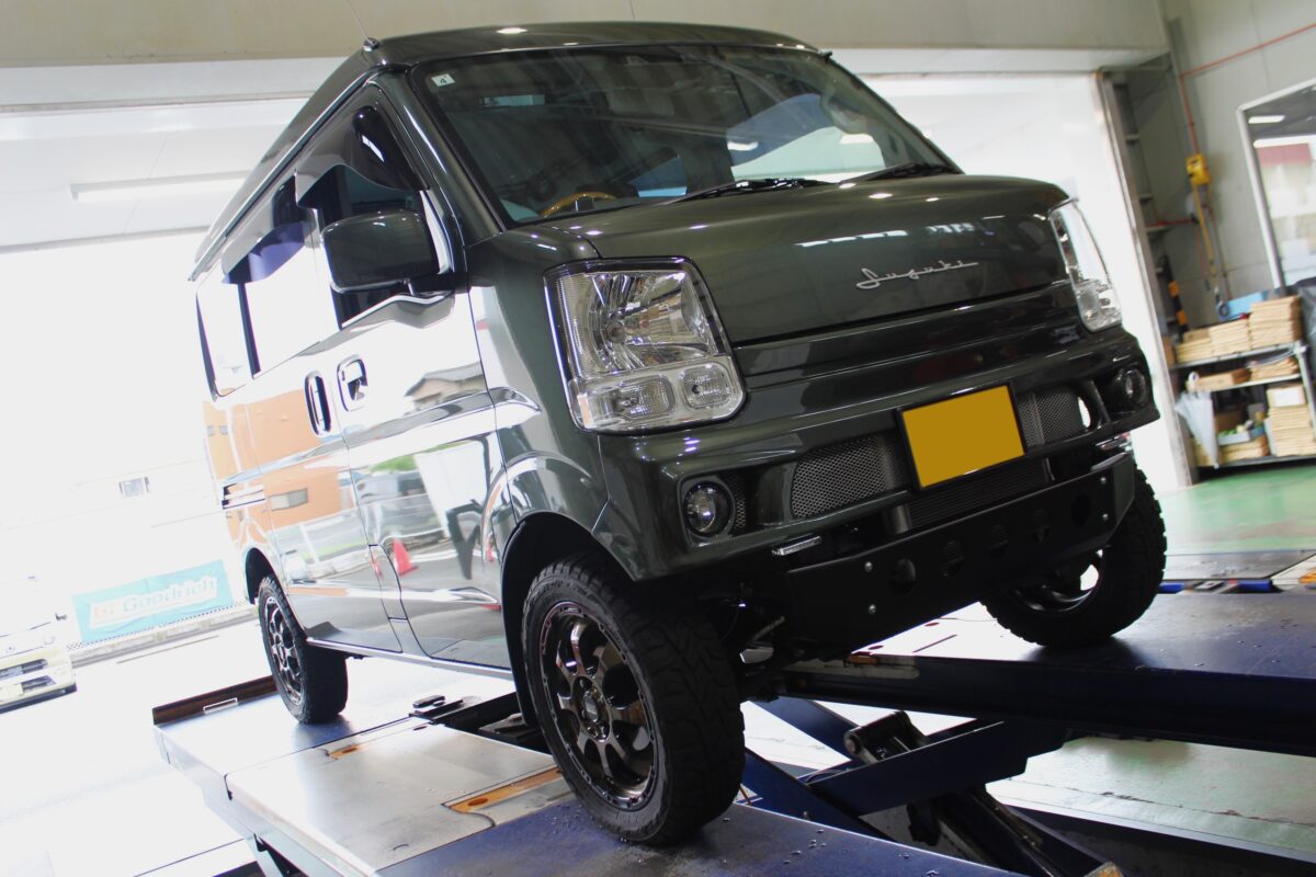 "アゲ軽"として今ホットなジャンルの箱型軽自動車のリフトアップ。
