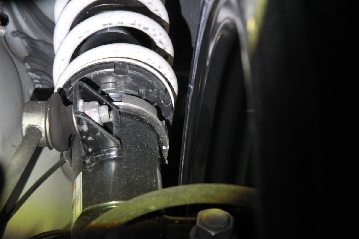純正ダンパーに比べ、車高調キットは筒の外径が太くなります。