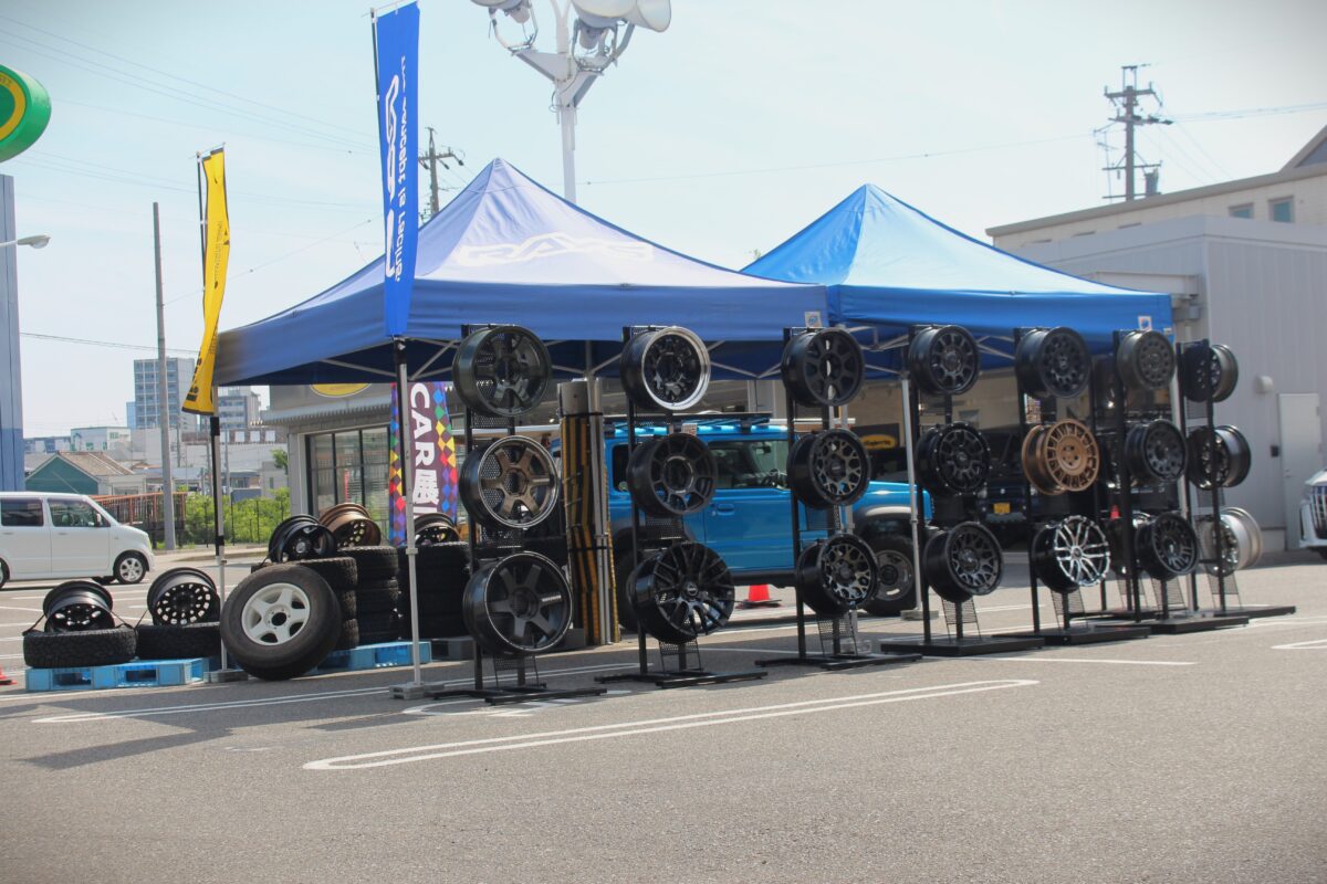 本日も店前に堂々とホイールを展示中!!
