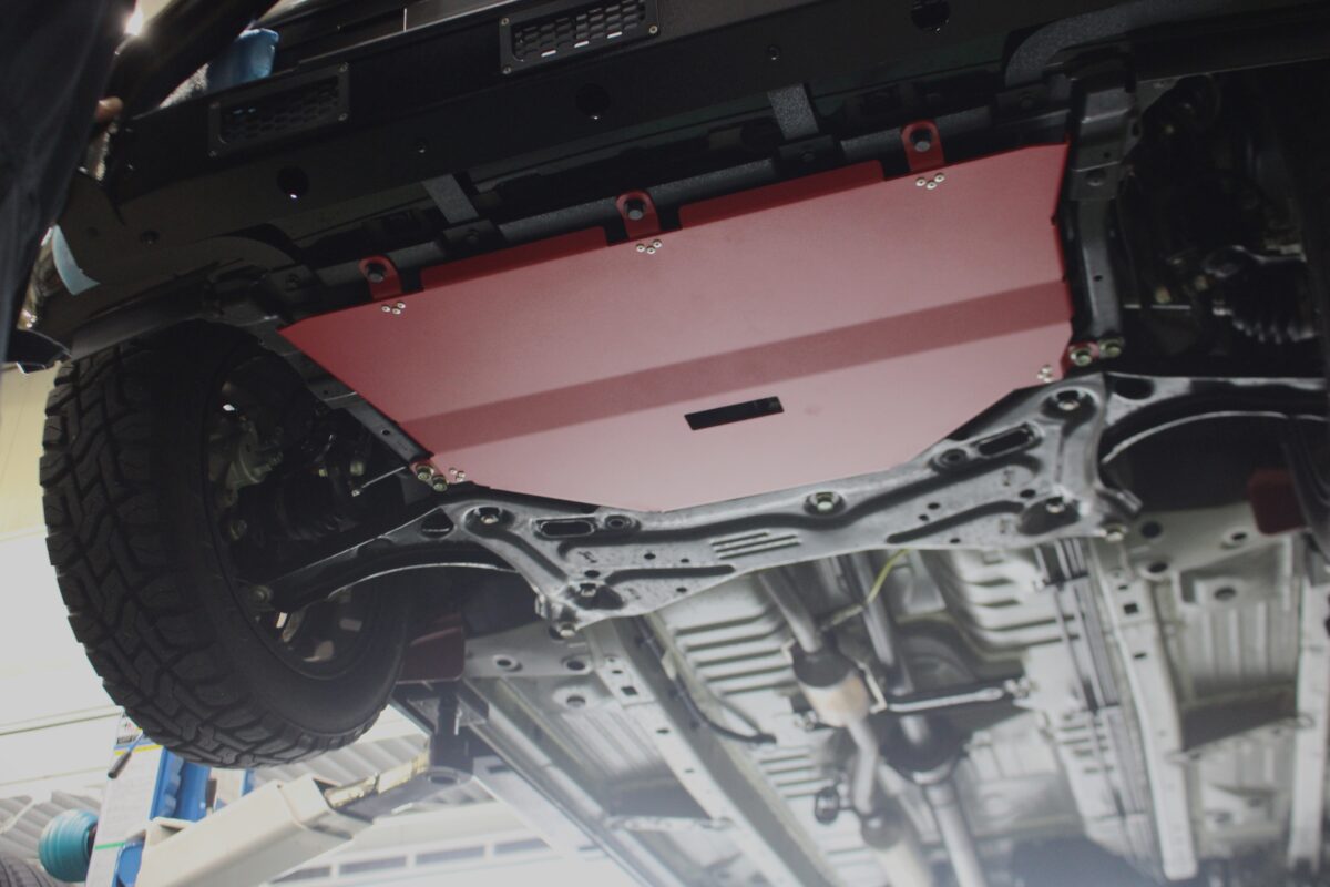 オフロード走行やキャンプで山や川に行った際など、岩場などにエンジン下が接触するのを守ってくれるパーツ。
