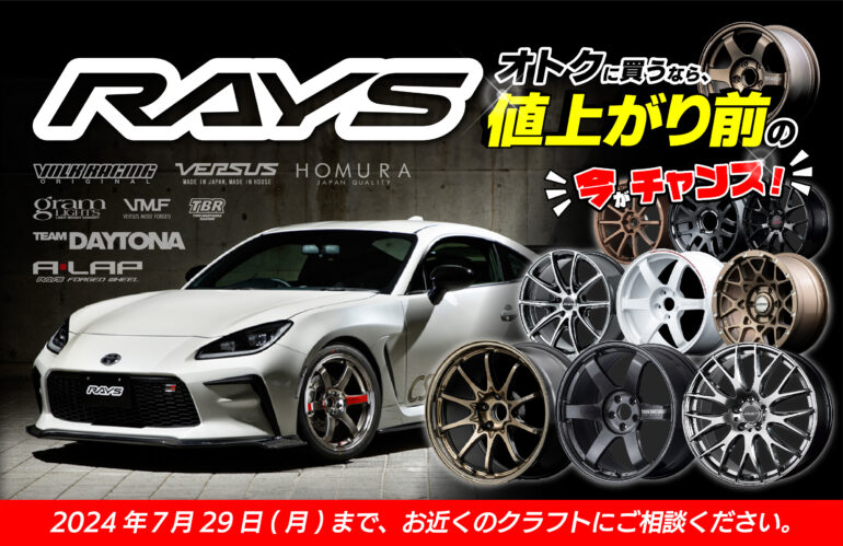 RAYSホイールについても、納期にかかわらず2024年7月末受注分までは従来価格のまま!