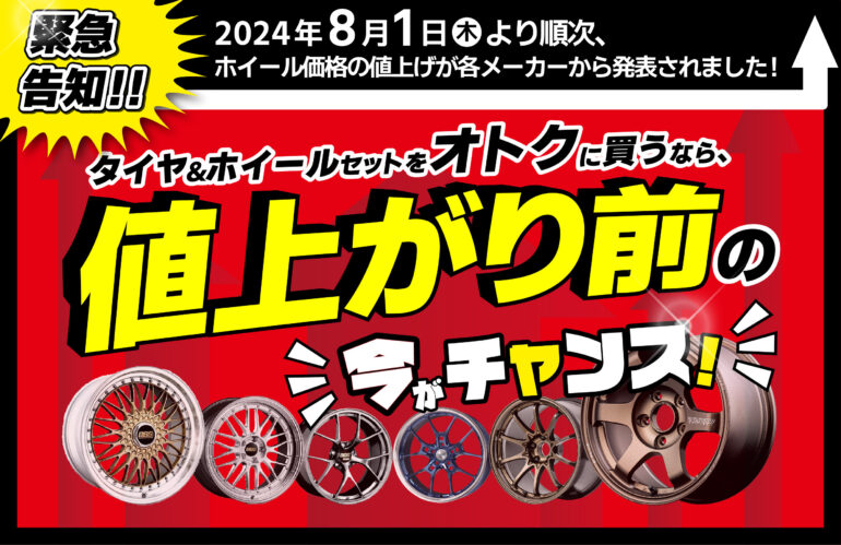2024年8月1日より順次、ホイール価格の値上げが各メーカーから発表されました。