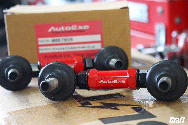 そして、車高を低めにセットするのでフロントのスタビリンクも一緒に交換する事に。