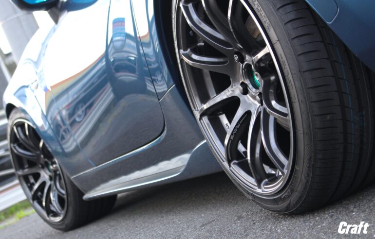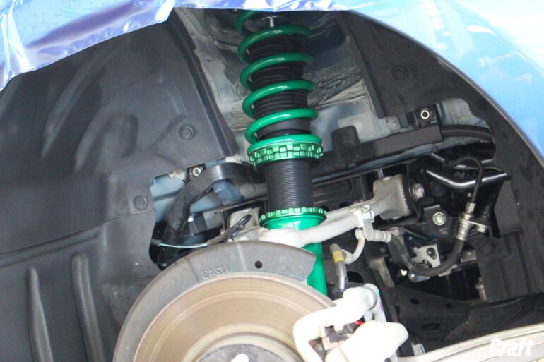 表題にもあります人気のコンケイブホイールを履かせるべく、まずは車高調でローダウンを行います。