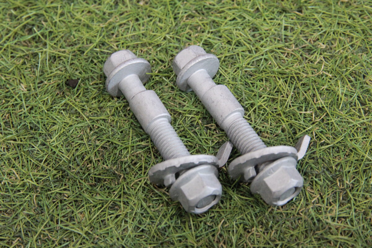 リフトアップに伴うポジキャン補正に“キャンバーボルト”を装着
