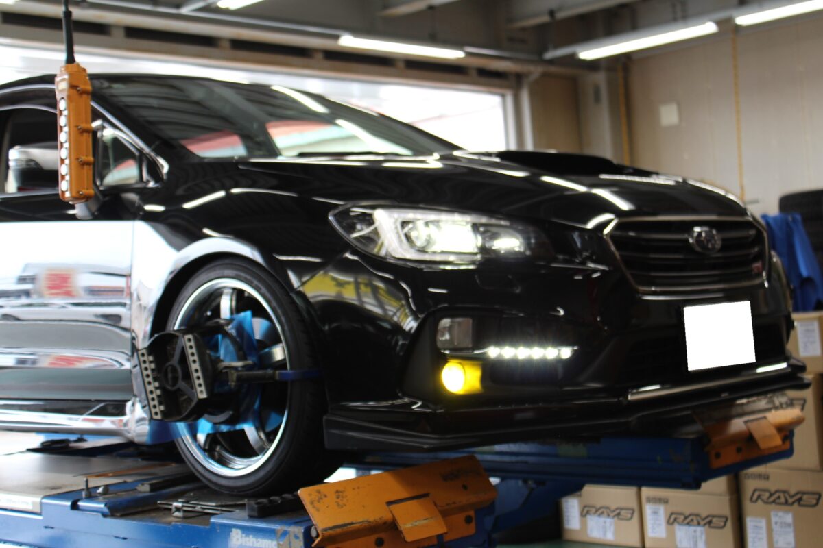 車高調を取り付けの際アライメントは未施工とのことで、アライメント調整も同時に実施させていただきました。