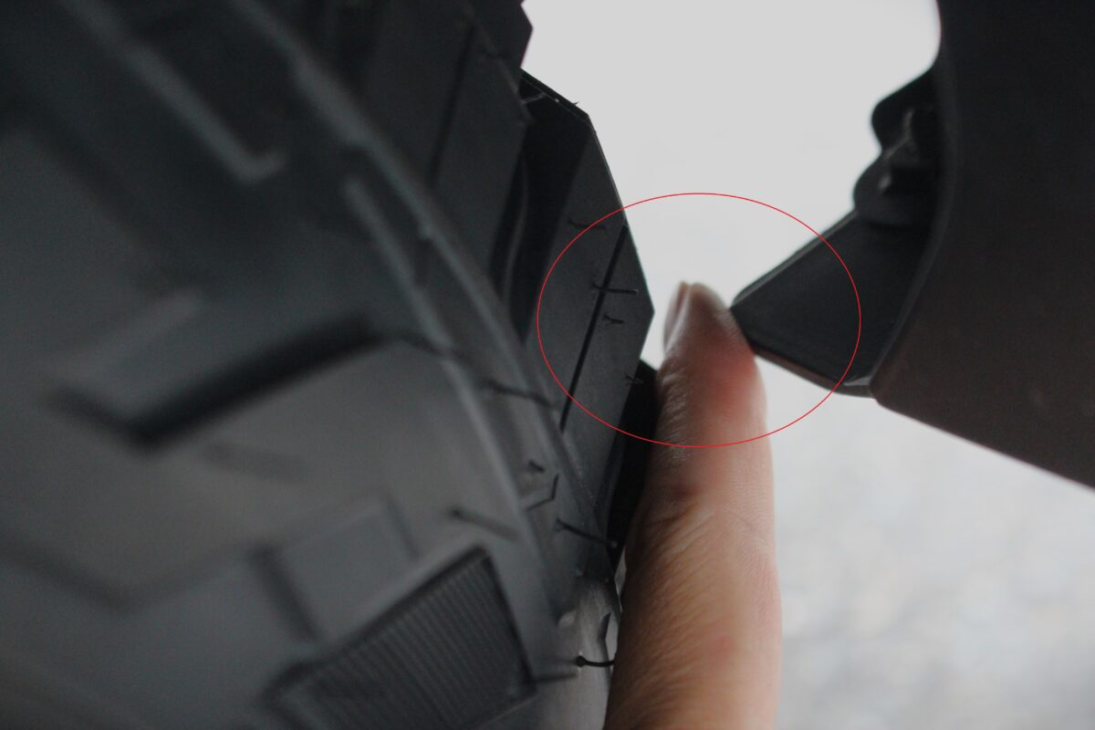 今回のタイヤサイズと銘柄では、指1本分のクリアランスに・・・・。