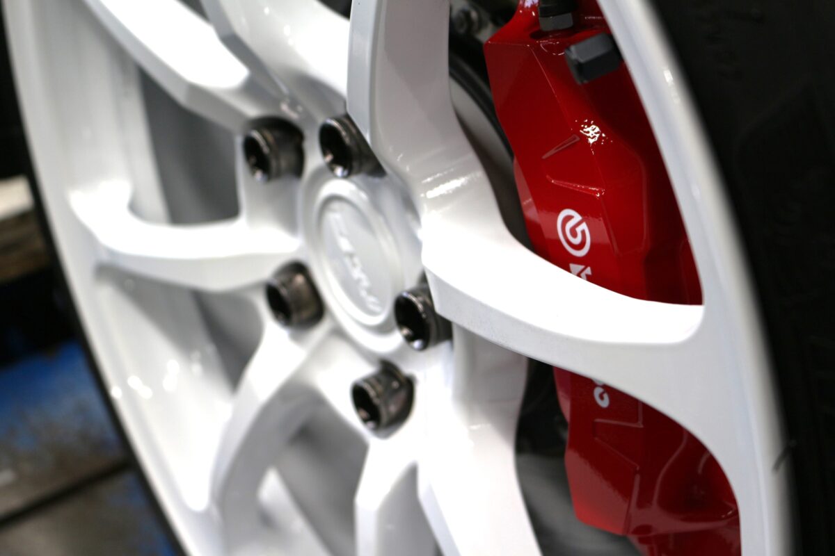赤色のブレンボキャリパーとセンターキャップの赤色も