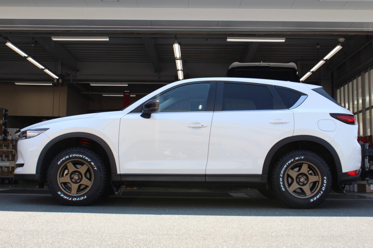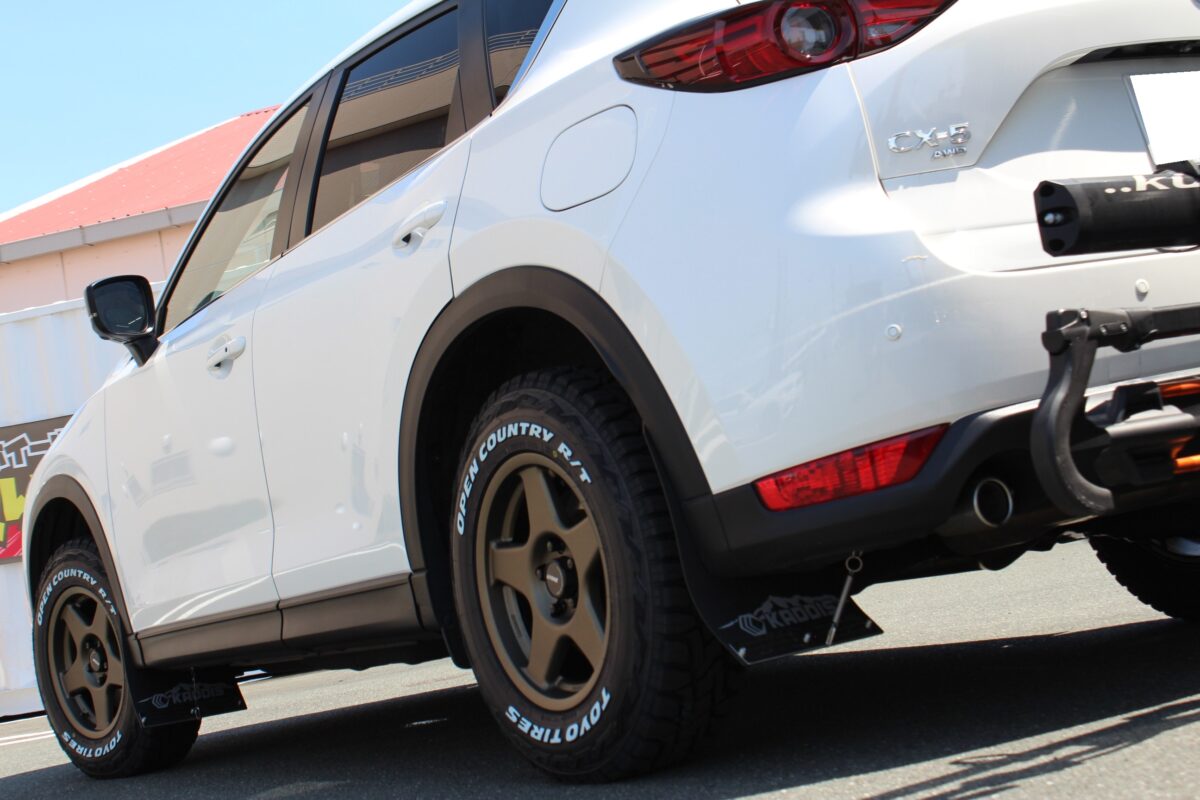 それをCX-5に装着するとなるとタイヤのはみ出しが気になるところ・・・