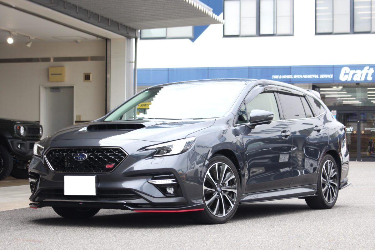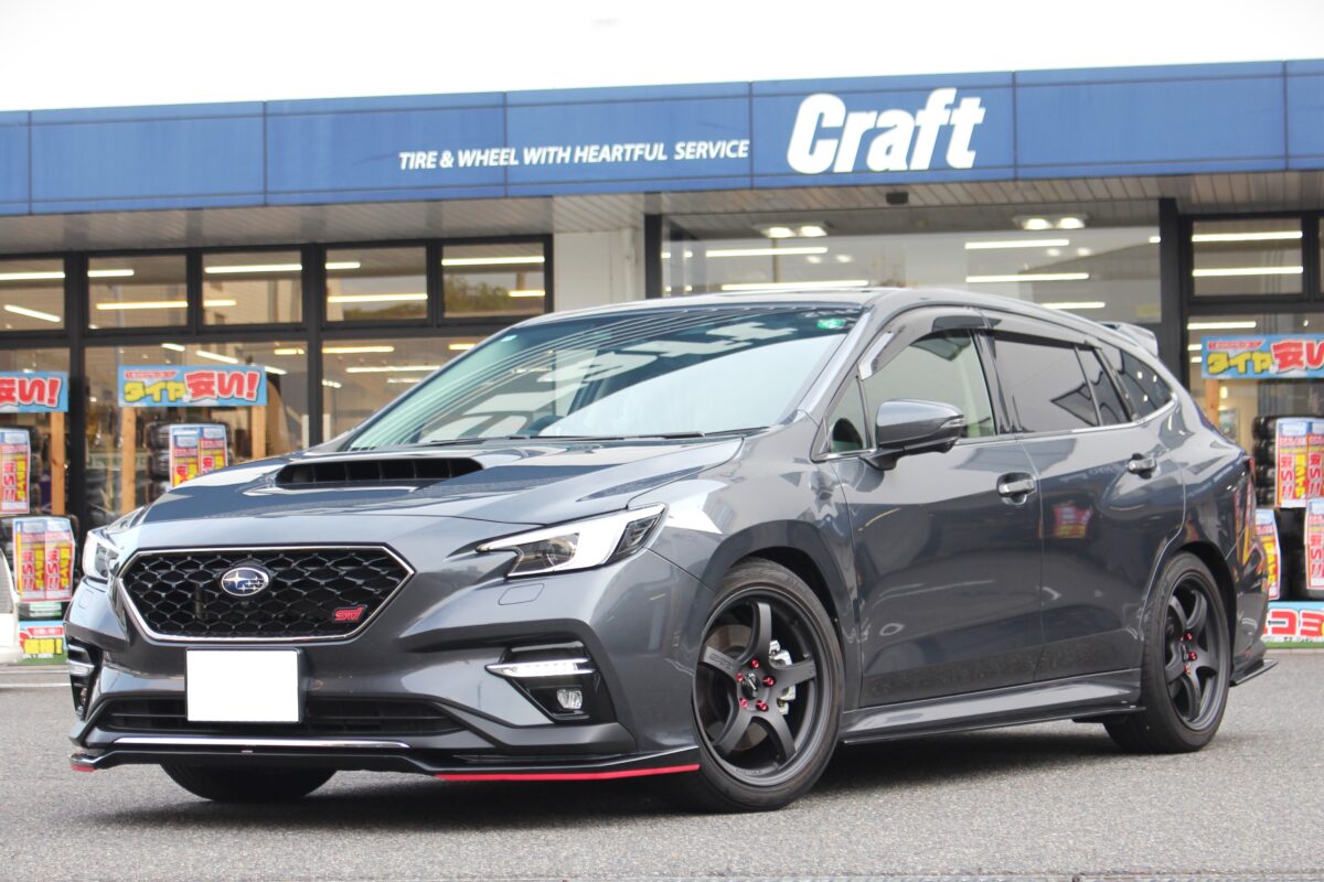 どんなホイールでも似合うレヴォーグ。スポーティーな雰囲気にカスタムするのにチョイスしたのは”グラムライツ57CRスペックD”オレンジのステッカーが目を惹きますが、ステッカーなしのマットスーパーダークガンメタもスパルタンな印象でGOODです♪