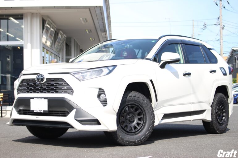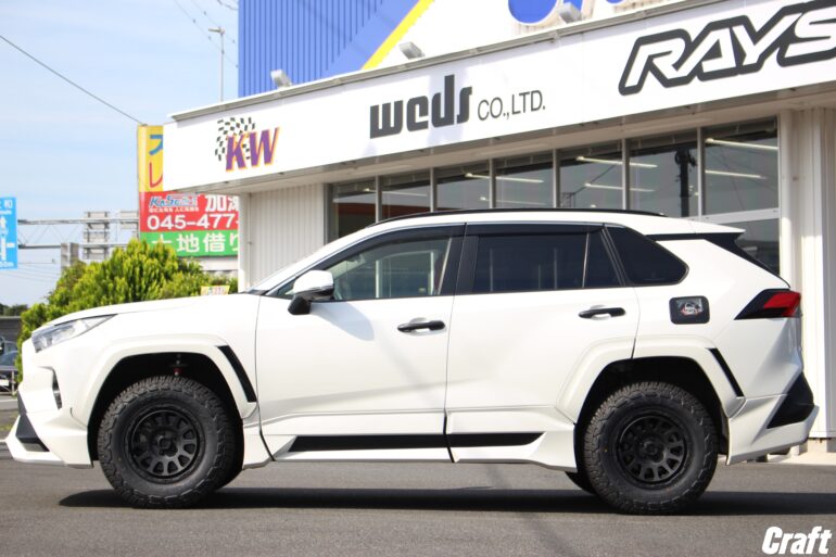 17inchのご要望が多いRAV4ですが、16inchでもタイヤの厚みが増え、リフトアップセットでやるとよりオフロード感が増しますよ!