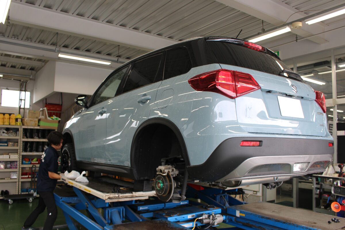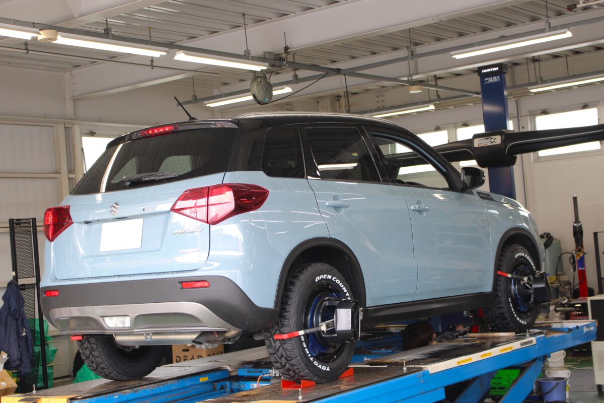 車種によって調整箇所などは変わりますが足回り交換や新品にタイヤ交換した時は