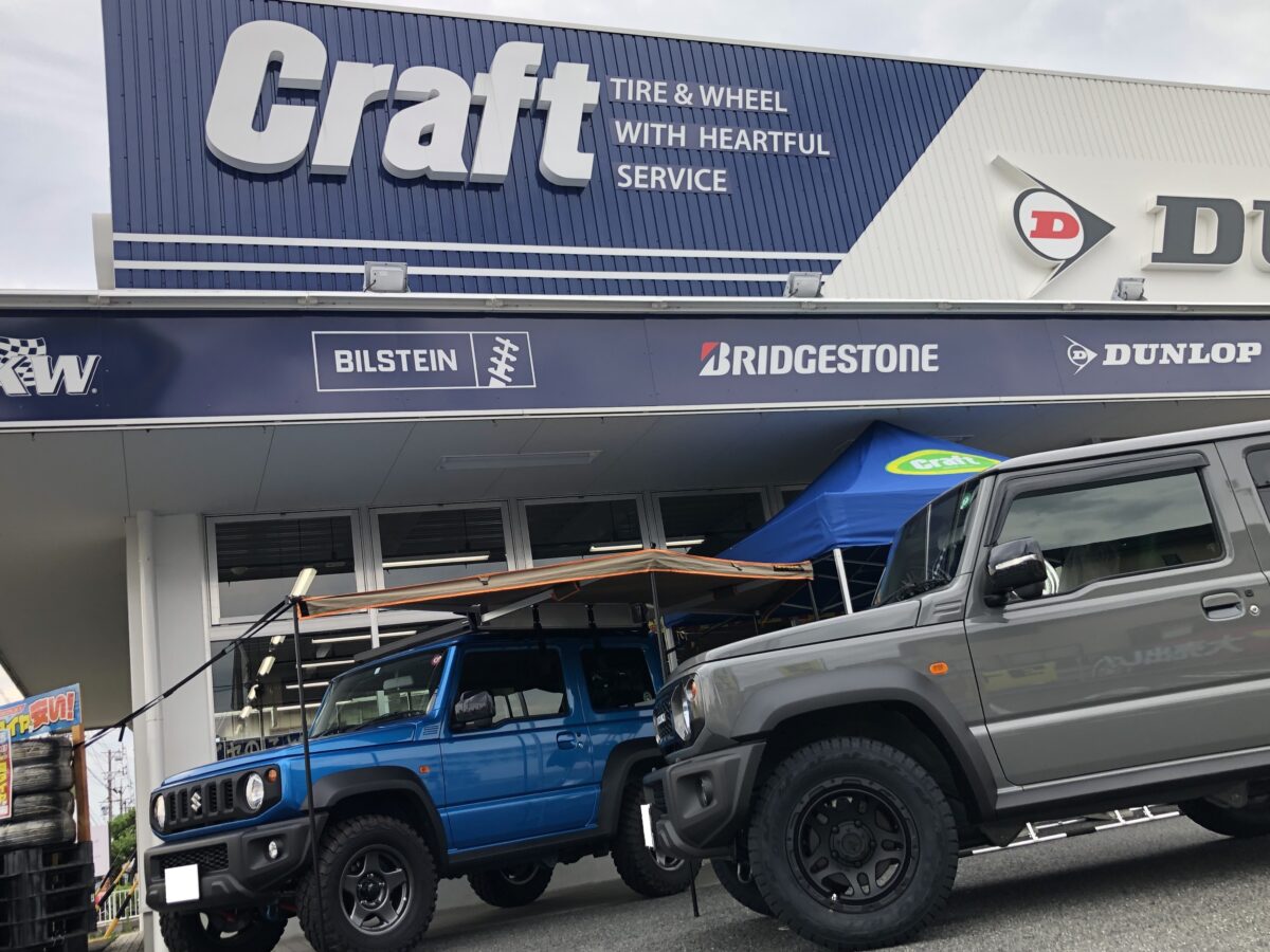 ■ ジムニー・シエラ・ノマド カスタムフェア開催中です! ジムニーカスタムフェア開催中のクラフト尾張旭店です。 ジムニー用ホイールを大量展示! デザイン・カラーをたくさん見て頂けます。 ジムニーカスタムはクラフト尾張旭店にご相談下さい。 人気ブランドホイール RAYS・4×4エンジニアリングのホイールを展示中。 鍛造モデルのAラップや、オフロードホイールと代名詞ブラッドレーもあります。 ウェッズ マッドヴァンスの新作も展示中です。 オフロードスタイルにピッタリなホイールですね! MID・PPX・デルタフォース・クリムソンなどなど 通常展示も豊富なクラフト尾張旭店です。 是非見に来てくださいね~ オフ系タイヤの在庫もありますので 即日取付可能な商品も多数あります。 ブラッドレー&カントリーサスペンションを装着したJB64デモカーを展示中です。 ホイール交換&リフトアップをするとこんなにかっこいいスタイルになりますよ! ジムニーカスタムフェアは3/8(日)までです。 たくさんのご来店お待ちしております。