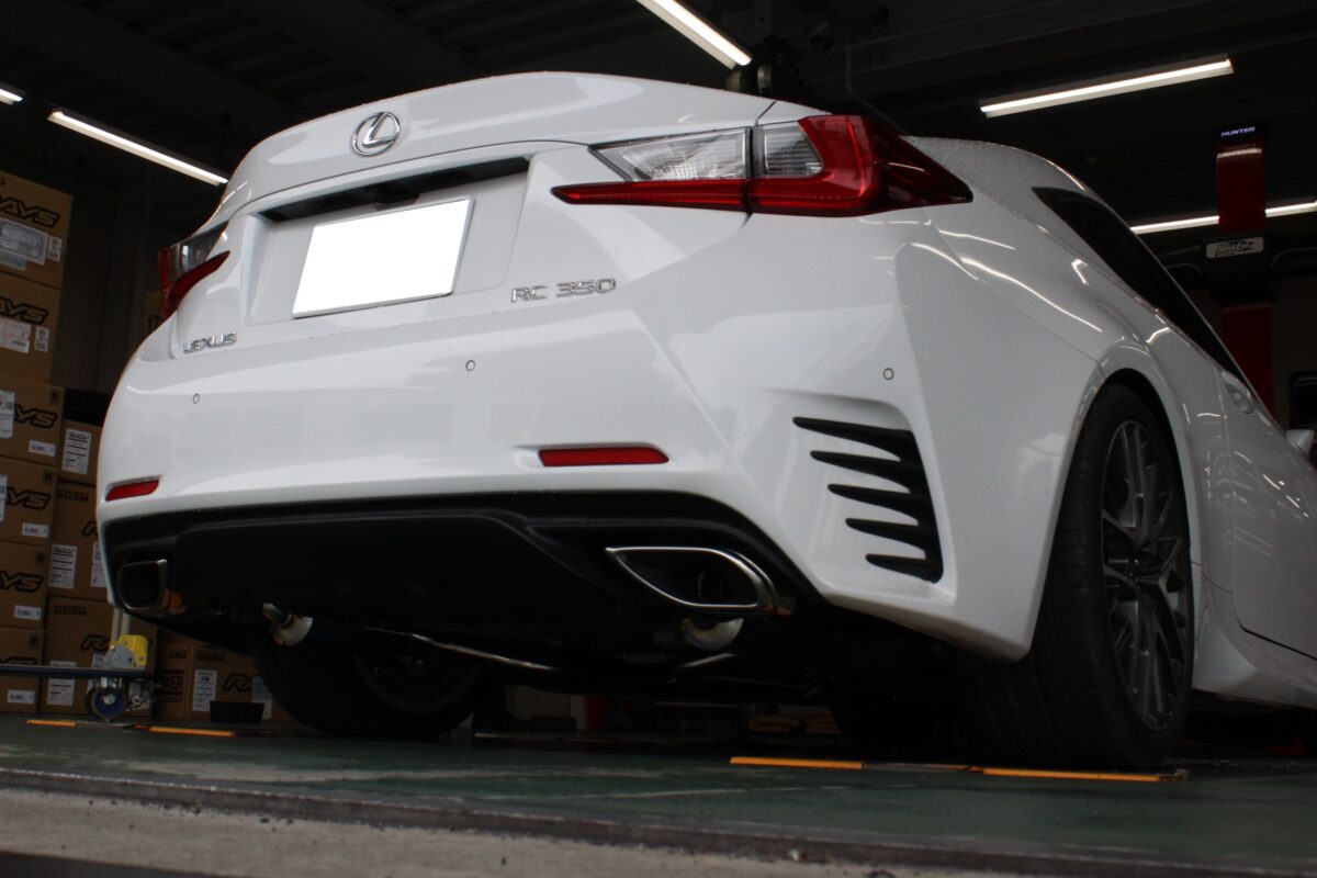 テール部はFスポーツの純正フィニッシャーを専用アダプターを介して流用します。