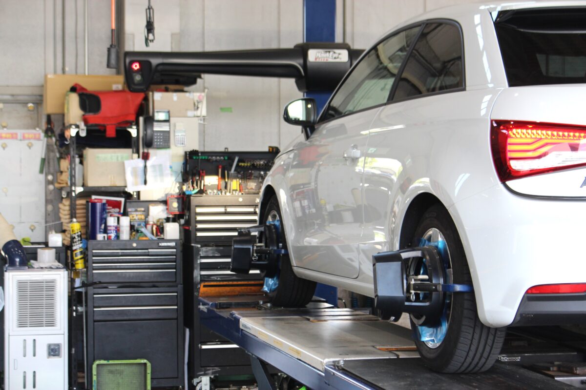ダウンサス取付作業の次は3Dアライメント調整を実施し、