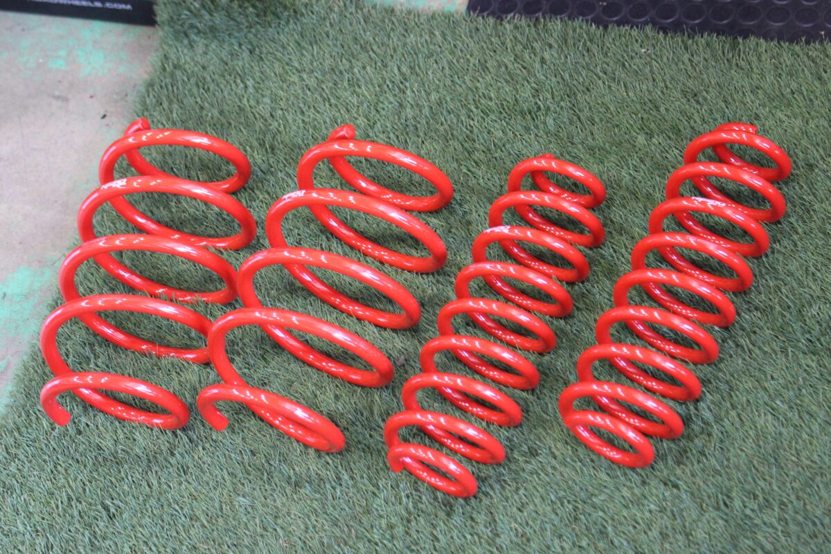 タナベのダウンサス”サステックNF210”を装着していきます。NF=ノーマルフィーリングを目指した乗り心地重視なローダウンスプリング