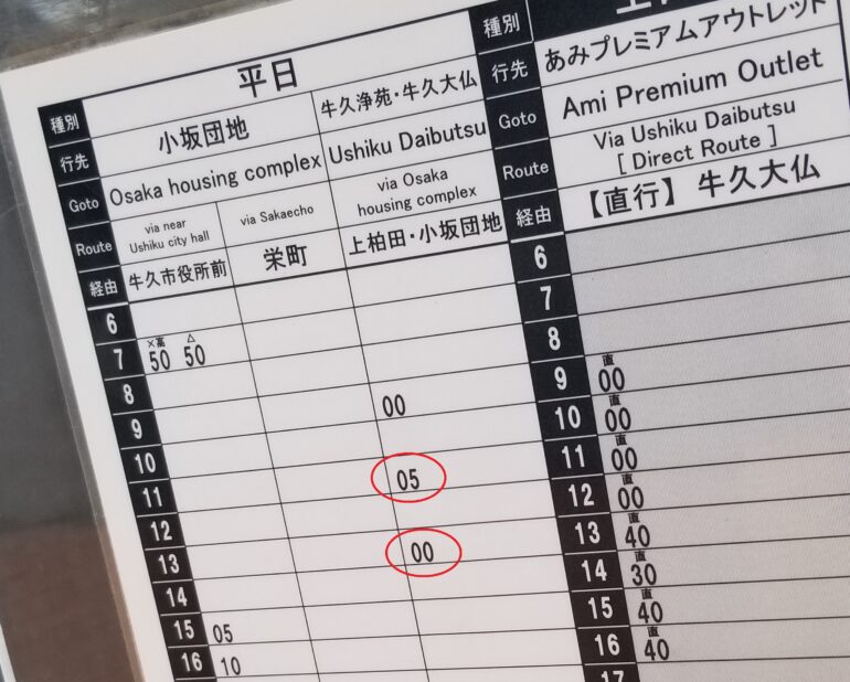 スマホで調べると、ここから目的地までのバスが出ています。