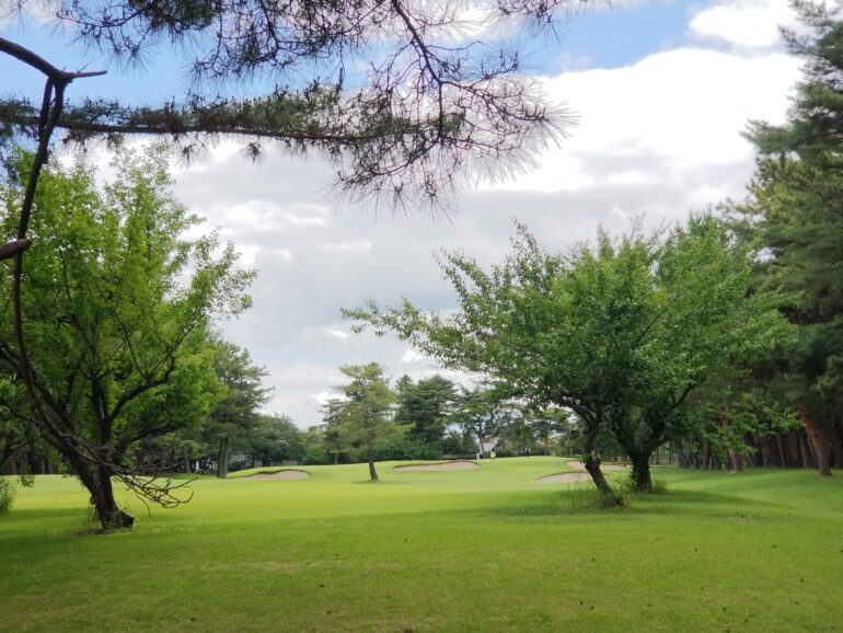 歩いている道中には中学校やゴルフ場などがあり、のどかな風景を満喫。