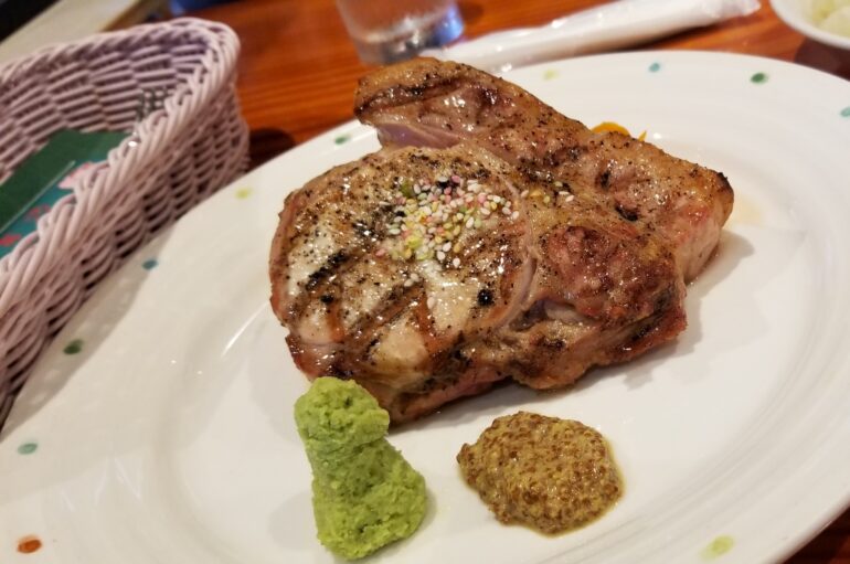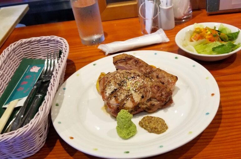 とっても肉厚なポークステーキ。
