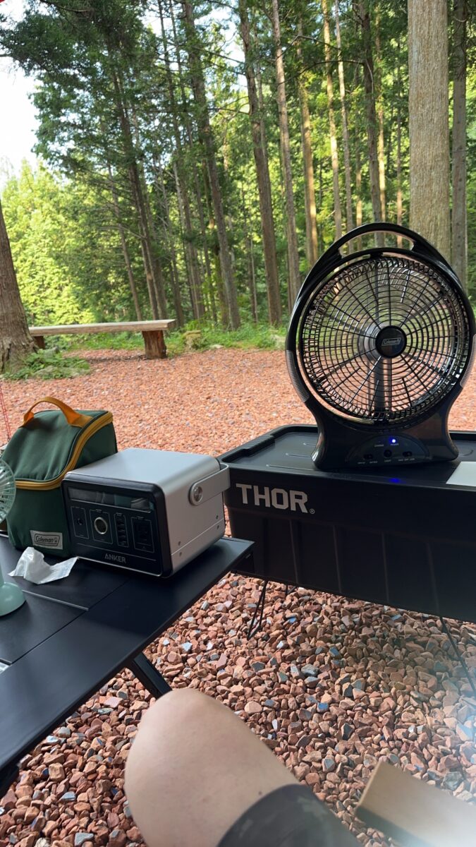 ここのキャンプ場は電源がないのでポタ電が必須です、これで快適にすごせますね♪