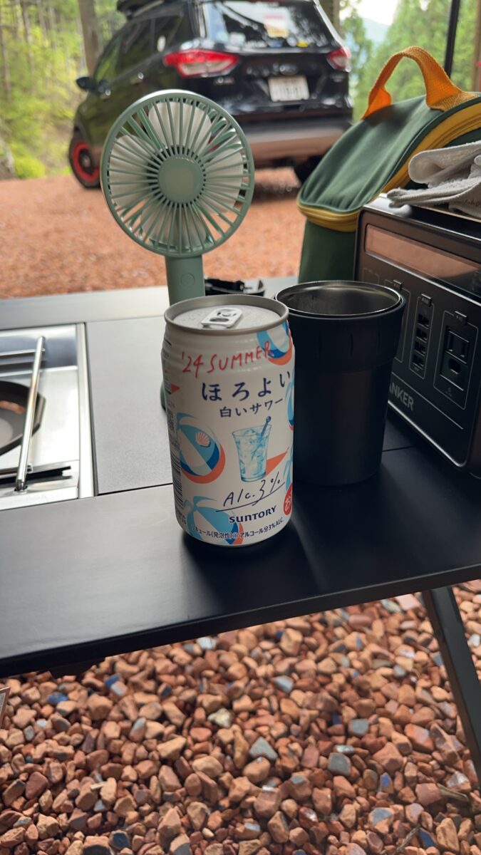 ということで、ここでソロキャンデビューに私が大好きな『ほろよい』で一人寂しく乾杯🍶