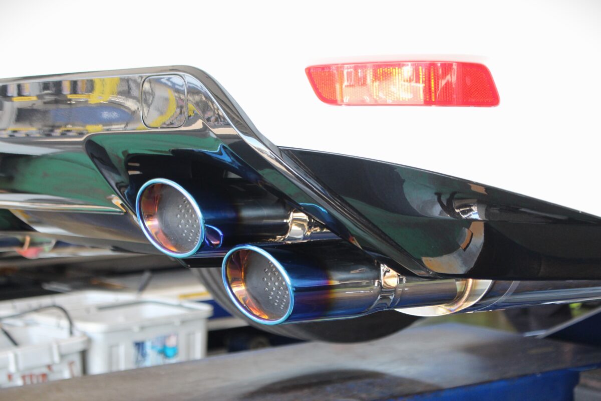 GS F純正同様に斜めに2本を配置することで大径テールをバンパー加工なしで装着OKです◎