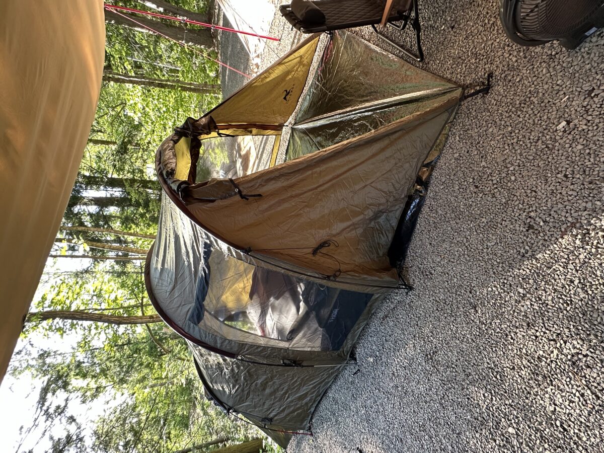 テントはTOMOUNTのソロサイズのツールームテントです。