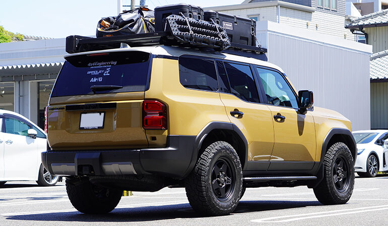 素のスタイルでも十分かっこいいランクル250(写真はファーストエディションの丸目モデル)ですが、タフなスタイルを追求するなら、タイヤ&ホイールをはじめ、足回りのカスタムも気になるところ。
