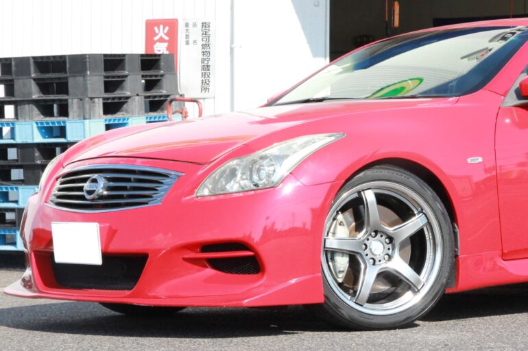 スカイラインクーペ。 通称 スカクーの愛称でドレスアップシーンの最前線でいまだに人気のクーペ。 ホイールサイズもザ・日産サイズで魅力的な1台。 そんなスカクーのホイールを装着しましたのでご紹介いたします(^^)     今回装着したホイールはモデル末期デザイン。 そんなの関係ない。自分の気に入っデザインで。 という事で奇跡的にメーカーに在庫が残っていたので迷わずオーダー頂きました。 ワークグノーシスCV201     細身のスポークでフルリバースリム。 おおきく魅せることのできる仕様です。   ナットは当店人気の53mmレングスのロングナット キョウエイレデューラレーシングEL53     ナットも拘るのが今。 ナットで個性が出ますよ~。 余談ですが当店スタッフもホイールを変えると必ずナットに拘ってますよ(*^^)v   ホイール:ワークグノーシスCV201 サイズ:20インチ カラー:マットBK タイヤ:ニットーNT555 G2   【BEFORE】 【AFTER】   純正19インチから20インチへ。 リアサイズはディープコンケイブディスク。 圧巻の深リムとコンケイブの組み合わせ。 破壊力抜群ですね~まさに日産っといったサイズですね。     リアからのずっしり感。 アリですね~( *´艸`) 275幅のタイヤ幅を選択しています。     このスタイルいいなぁ~なんて思ってももう手に入らないグノーシスCV201。 うらやましい限りでございます。   アケボノ4POTもしっかりアピール。     ツライチセッティング・ワークホイールはクラフト知立店まで。 皆様のお問い合わせお待ちしております(^^♪