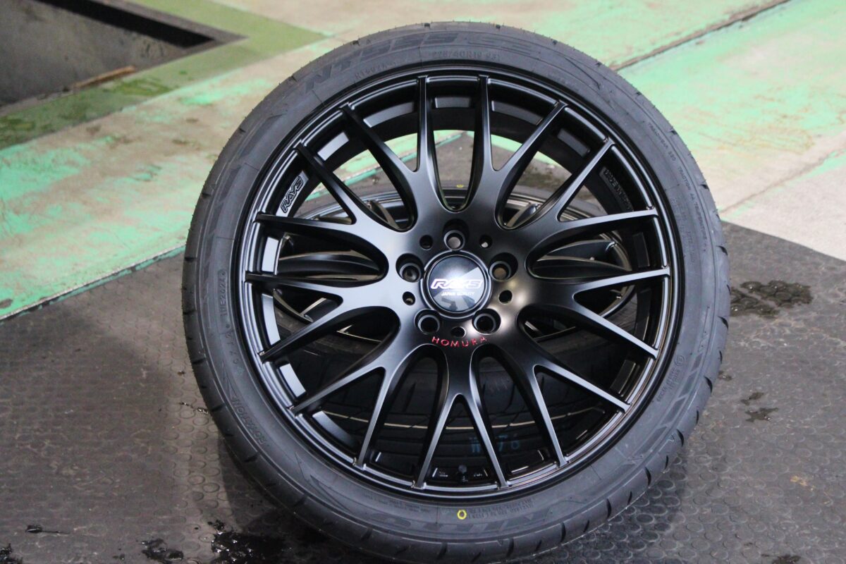 人気ホイールメーカー「レイズ」のプレミアムキャストホイールが”ホムラ”スポークサイドに立体感を追加することでボリュームあるボディサイズのクルマとの相性も抜群な”ホムラ2x9プラス”をチョイス