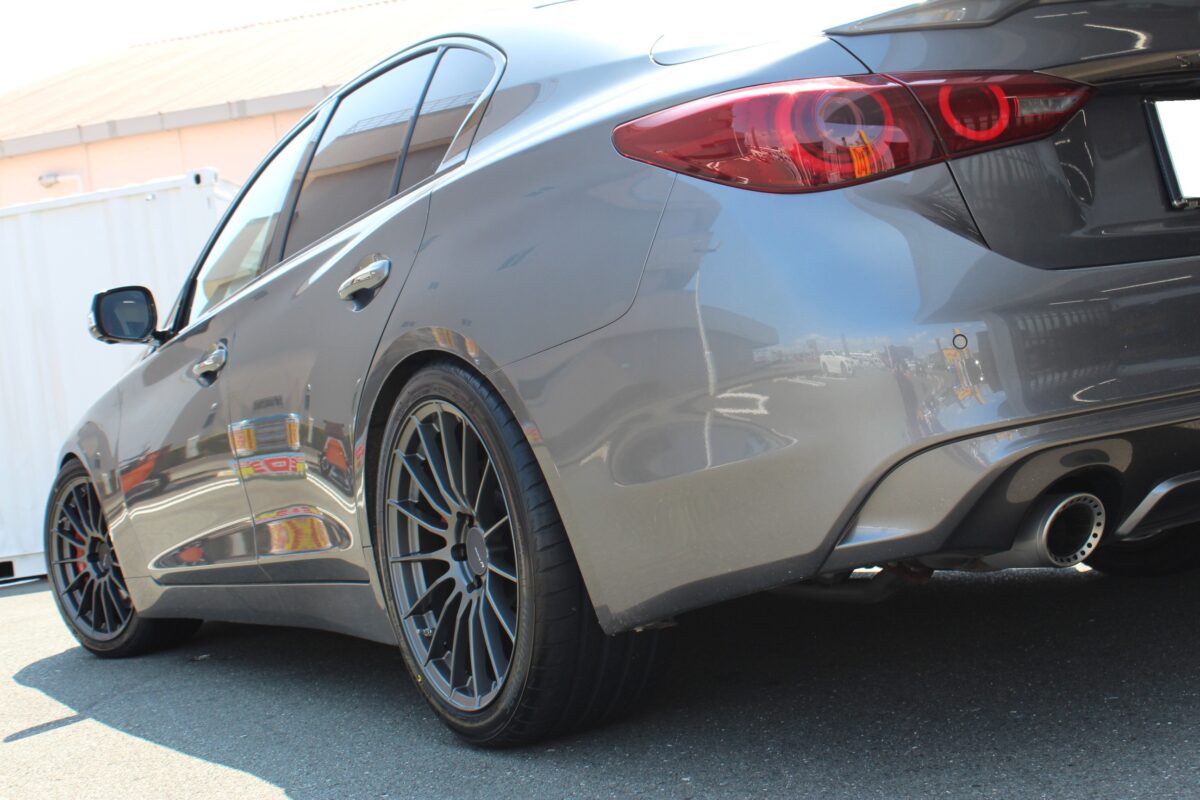 V37スカイラインはリヤフェンダーのツメがないのでタイヤのツラを出しても干渉の心配がないのは嬉しいポイント(^_-)-☆
