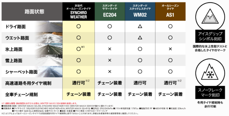 シンクロウェザーが従来のオールシーズンタイヤと何が違うのか…