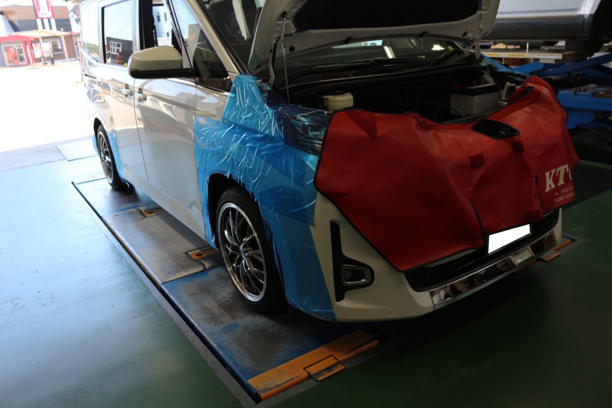 お客様の大事な車を守るためきっちりとシートを貼って保護をします。